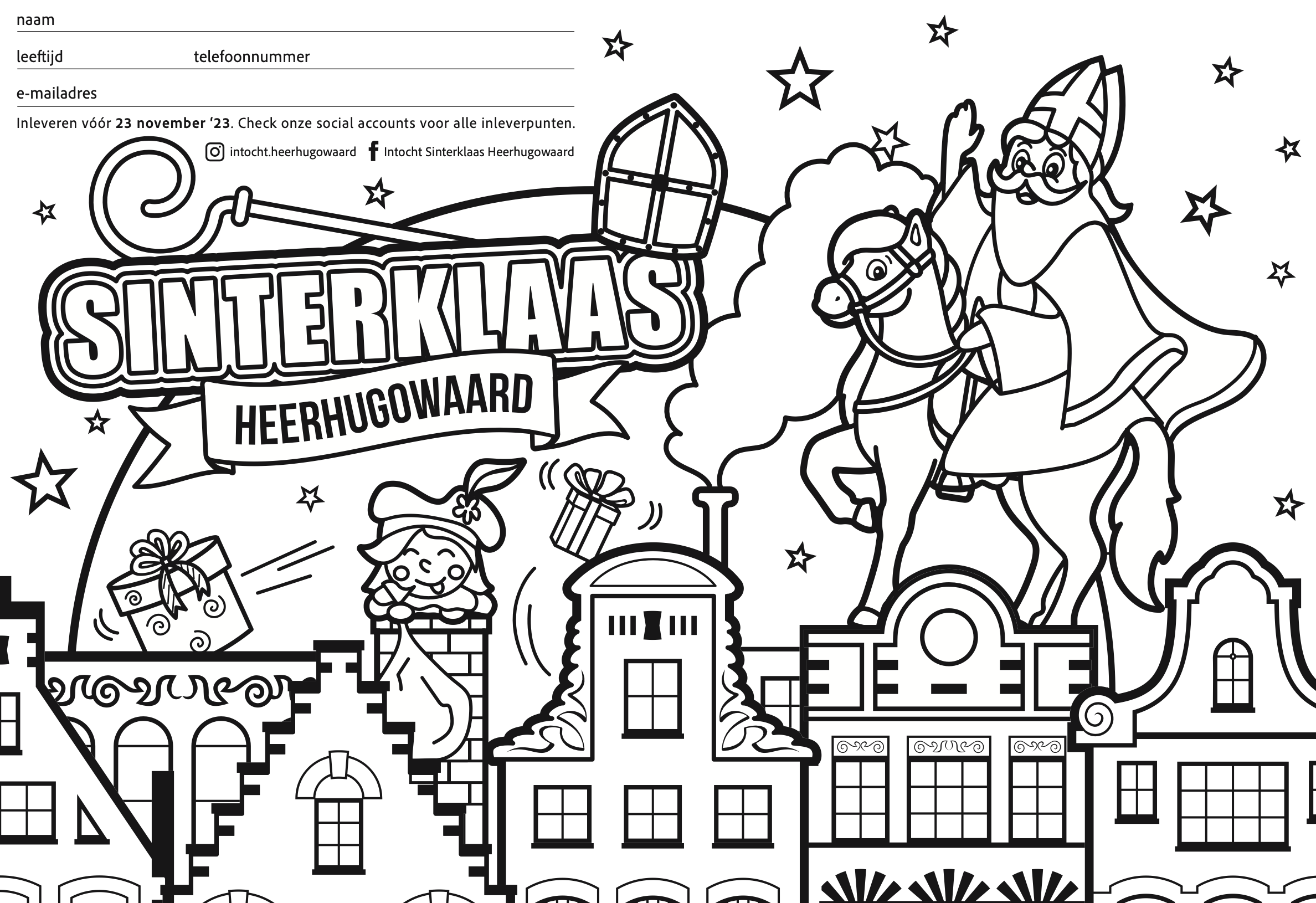 Op zaterdag 25 November is de Intocht Sinterklaas Heerhugowaard. Om het een extra feestelijk tintje te geven kunnen alle kinderen meedoen met een kleurwedstrijd en leuke prijzen winnen!