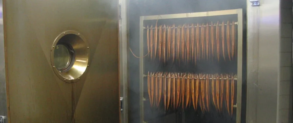 En dan de kroon op het werk: het roken. Geheel volgens ons traditionele familierecept roken wij uitsluitend op eikenhout. Daarbij vertrouwen we niet alleen op de modernste rookkasten, maar vooral op de deskundigheid van onze rookmeester. Hij houdt het rookproces nauwlettend in de gaten en stuurt bij als dat nodig is. Als de rookmeester na 2 tot 3 uur vaststelt dat de paling perfect gaar is, wordt de vis uit de rookkast gehaald om af te koelen.