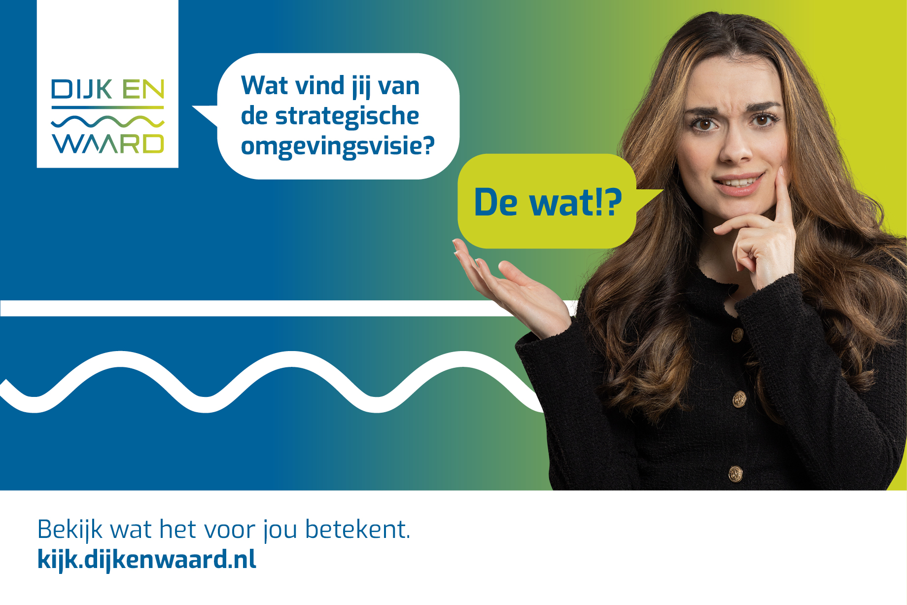 Met de publiekscampagne ‘Dijk en Waard kijkt verder’ worden inwoners, ondernemers en belanghebbenden uitgenodigd om een reactie te geven op de keuzes die de gemeente maakt. Naast de normale manier van een zienswijze indienen, kan iedereen laagdrempelig een reactie geven via kijk.dijkenwaard.nl