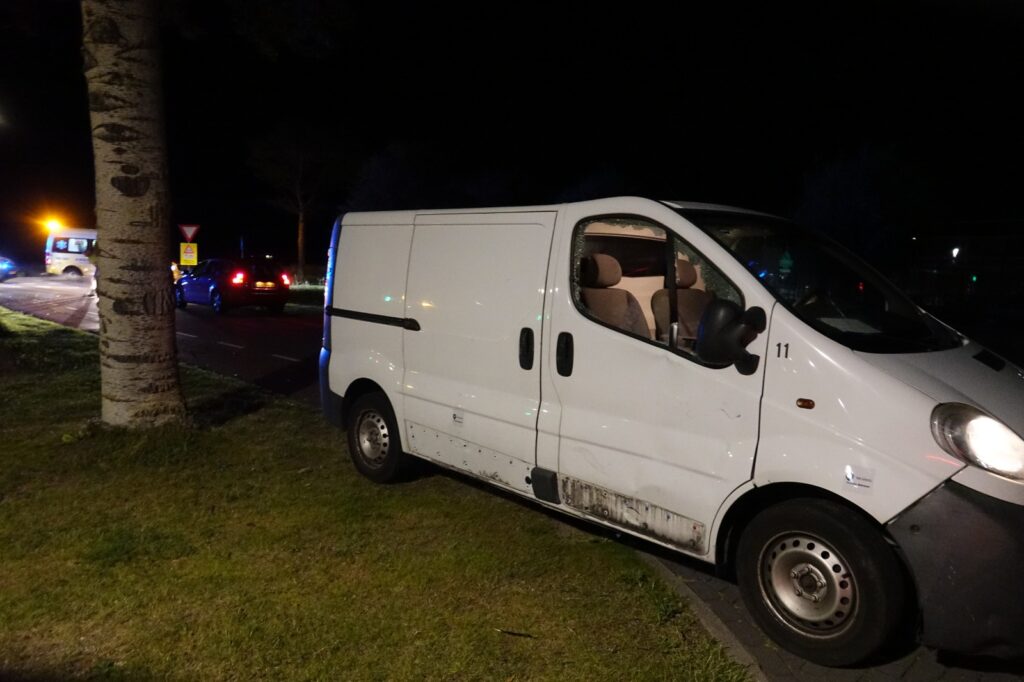De scooterrijder is hard tegen de bedrijfsbus aangereden en is met onbekend letsel overgebracht naar het ziekenhuis.