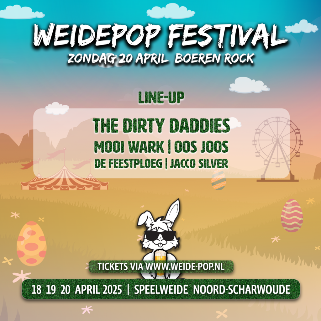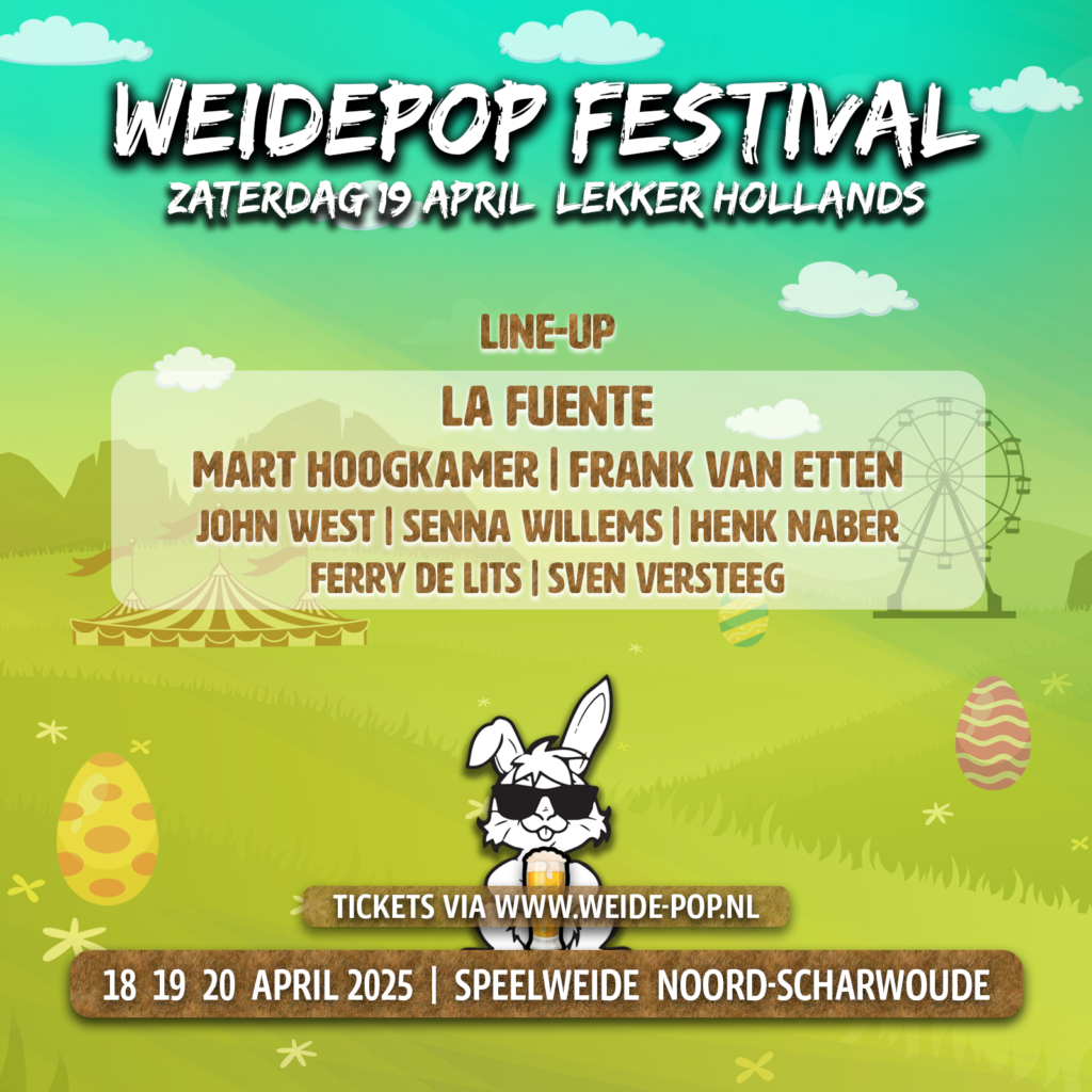 In het Paasweekend is het het eindelijk dan weer zover; dan strijkt Weidepop Festival 2025 weer neer op het mooie Speelweide terrein in Noord-Scharwoude!